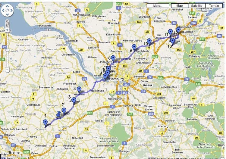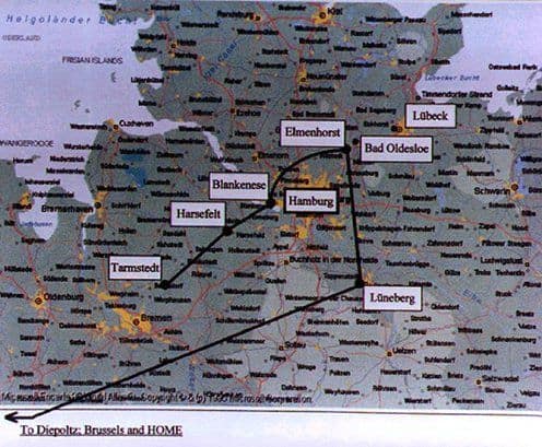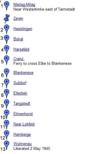 Map details sent to me by Keith Jack and obtained from his father's recollection of the Final march to Lubeck and Home. (His father was Lt Gordon B Jack (SAAF) South African Air force).